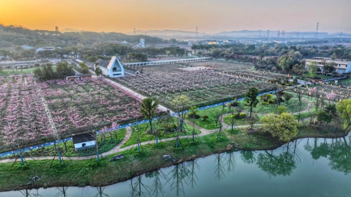 29日,“水蜜桃之乡”阳山的万亩桃林花开正艳,2026中国田径协会10公里精英赛无锡阳山站在这里开跑。5000名身着桃花主题参赛服的跑者涌入花海,身前是一条串联起荒废、村舍与春光的赛谈。