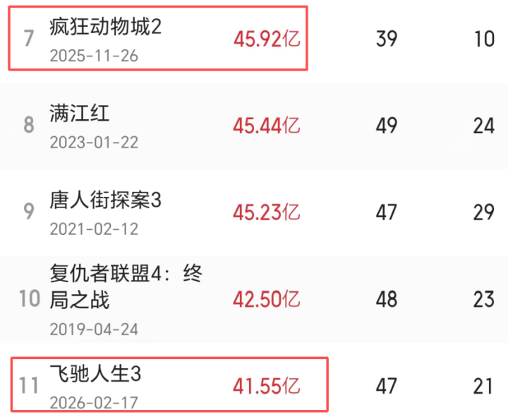 动作本年春节档冠军,影片本来很有但愿冲击44乃至45亿的收成,以致有望将客岁纵情收割票房的《纵情动物城2》拉下马,登上中国影史票房排名榜第七的位置。