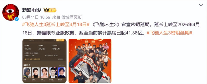 看得出来,片方也充满规画,为了更好的冲刺票房,《驰骋东说念主生3》也曾官宣将密钥脱期至本年4月18日,赫然是准备要济河焚州了!