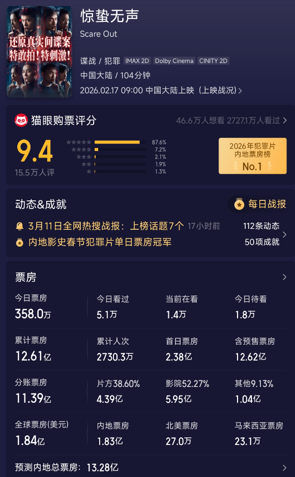 《惊蛰无声》这部电影在豆瓣评分依然降到6分了,这照旧在诸君明星大咖们的粉丝景仰下的效果。